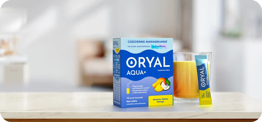 Oryal Aqua+ zawiera formułę elektrolitową H2OryalBoost – połączenie elektrolitów i prebiotyku.