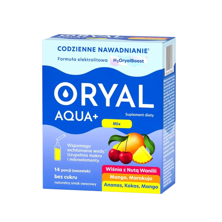 Oryal Aqua+ zawiera formułę elektrolitową H2OryalBoost – połączenie elektrolitów i prebiotyku.
