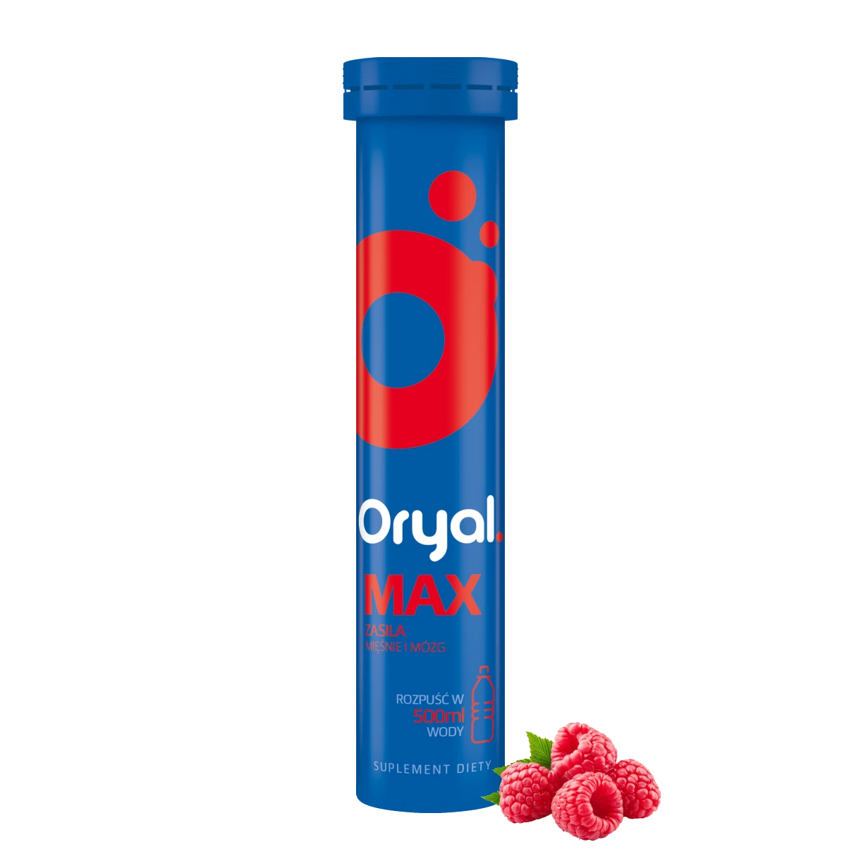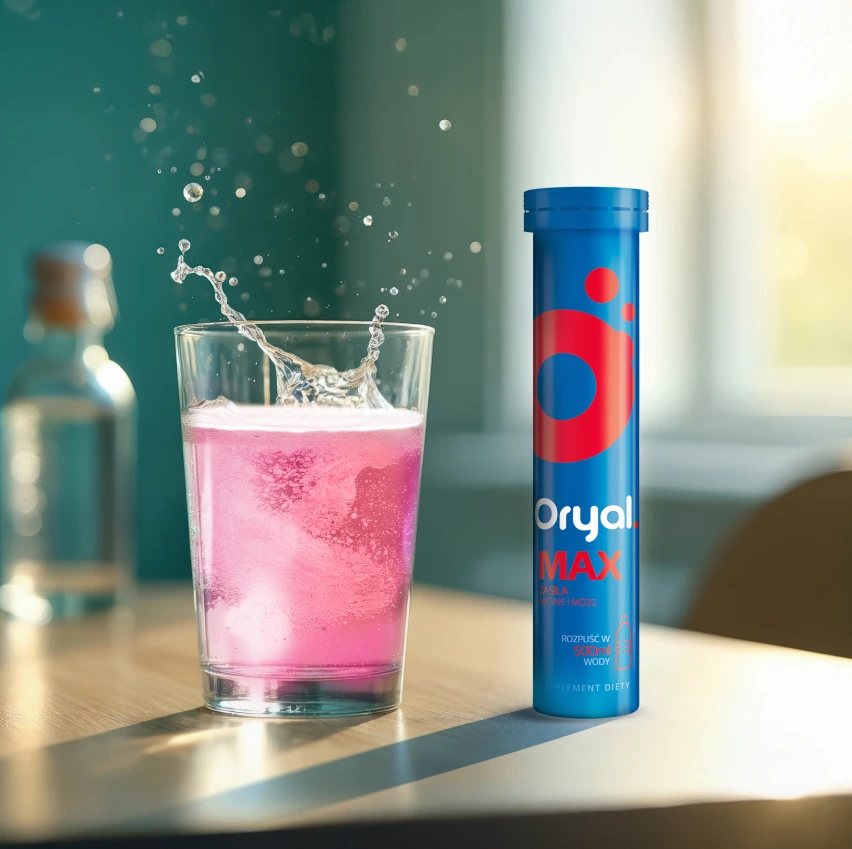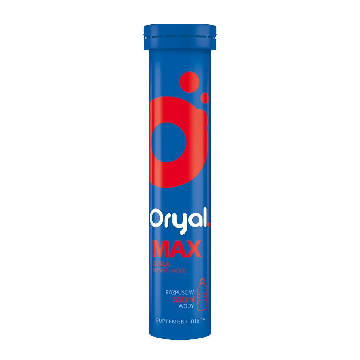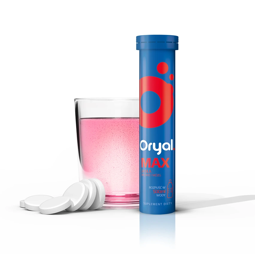 Oryal Max dla Ciebie podczas dużego wysiłku. Dostarcza elektrolitów takich jak sód, potas, magnez, wapń i chlorki w większej ilości1.